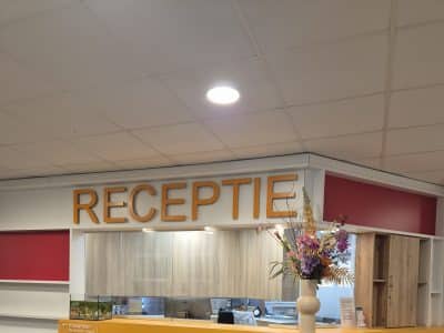 Met veel plezier en enthousiasme ontvangt ze de patiënten en andere bezoekers aan de balie.